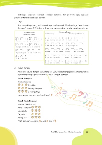 Sampah” ciptaan A.T. Mahmud. Guru bisa juga membuat sendiri lagu-lagu lainnya,