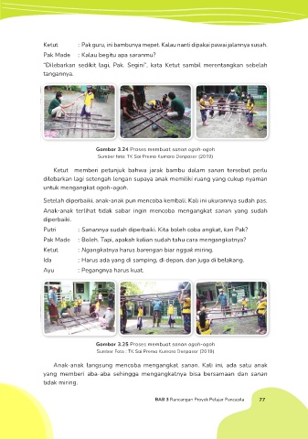 Ketut : Pak guru, ini bambunya mepet. Kalau nanti dipakai pawai jalannya susah.