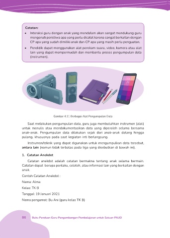 • Pendidik dapat menggunakan alat perekam suara, video, kamera atau alat