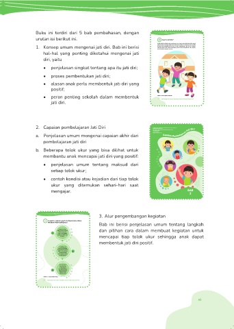 1. Konsep umum mengenai jati diri. Bab ini berisi seorang anak mengetahui hal yang ia sukai, kelebihannya, dan ciri-ciri fisiknya.