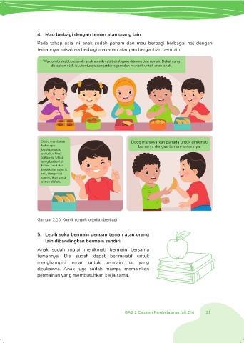 temannya, misalnya berbagi makanan ataupun bergantian bermain.