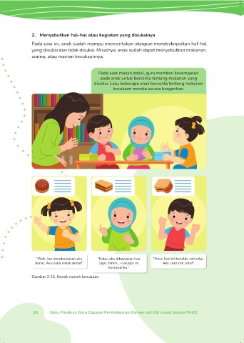 yang disukai dan tidak disukai. Misalnya, anak sudah dapat menyebutkan makanan,