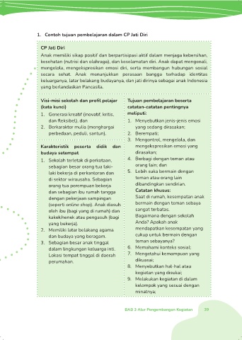 1. Contoh tujuan pembelajaran dalam CP Jati Diri