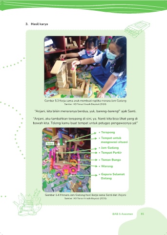 Gambar 5.3 Kerja sama anak membuat replika menara Jam Gadang