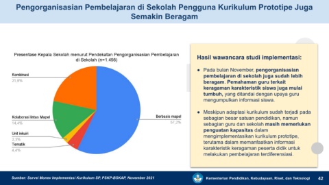 Sumber: Survei Monev Implementasi Kurikulum SP, PSKP-BSKAP, November 2021 Kementerian Pendidikan, Kebudayaan, Riset, dan Teknologi 42