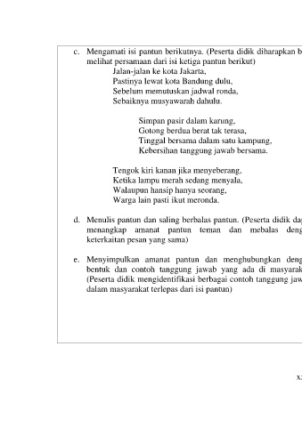 d. Menulis pantun dan saling berbalas pantun. (Peserta didik dapat mengikat tema pantun yang sama menulis dan percaya