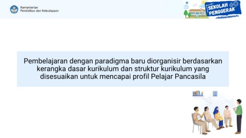 Pembelajaran dengan paradigma baru diorganisir berdasarkan kerangka dasar kurikulum dan struktur kurikulum yang disesuaikan untuk mencapai profil Pelajar Pancasila
