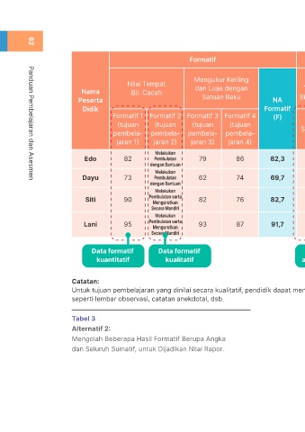 Formatif Formatif 3 (tujuan pembela- jaran 3) 79 62 82 93 Data formatif kualitatif
