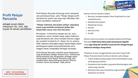Profil Pelajar Pancasila memiliki enam kompetensi Penjelasan di atas menggambarkan posisi dan fungsi Profil