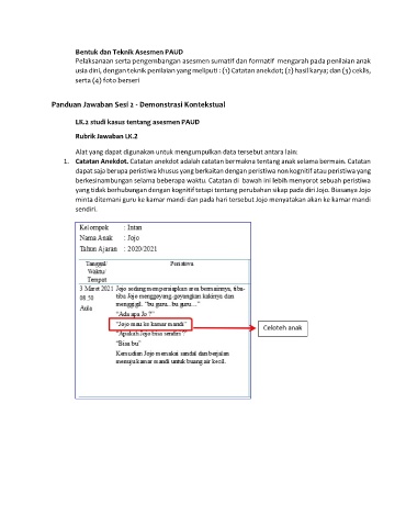 1. Catatan Anekdot. Catatan anekdot adalah catatan bermakna tentang anak selama bermain. Catatan