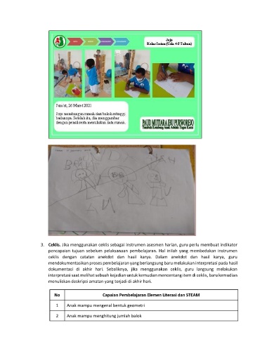 dokumentasi di akhir hari. Sebaliknya, jika menggunakan ceklis, guru langsung melakukan