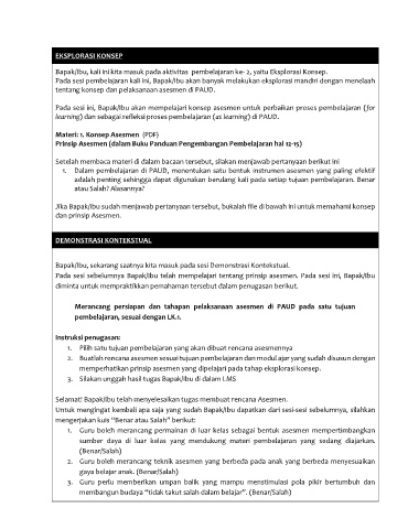 memperhatikan prinsip asesmen yang dipelajari pada tahap eksplorasi konsep.