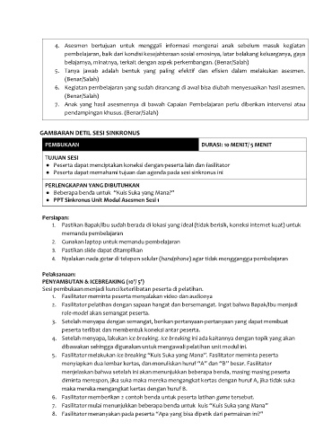4. Asesmen bertujuan untuk menggali informasi mengenai anak sebelum masuk kegiatan