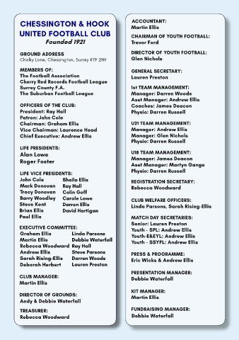 Chairman: Graham Ellis                 U21 TEAM MANAGEMENT: