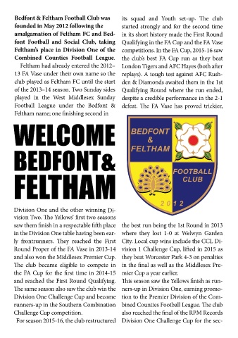 Feltham’s place in Division One of the competitions. In the FA Cup, 2015-16 saw