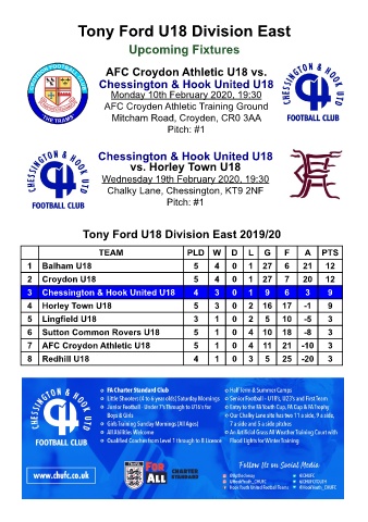 3 Chessington & Hook united u18 4 3 0 1 9 6 3 9