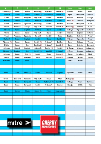 21/01 Abbey Rangers A CuP 0 - 4 Ajeti Morally upton black (1) Vidal Green Sergeant Adeosun ogbanufe Gange Peters Kabuye (1)