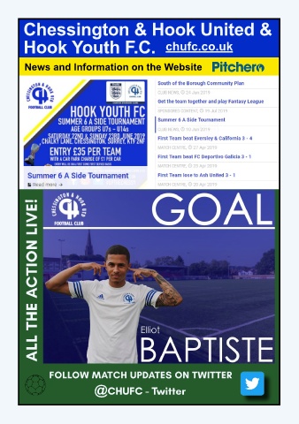 Chessington & Hook united & Hook youth F.C. chufc.co.uk News and information on the Website All THE ACTION lIvE! FOllOw mATCH UpDATES ON TwITTER @CHUFC - Twitter