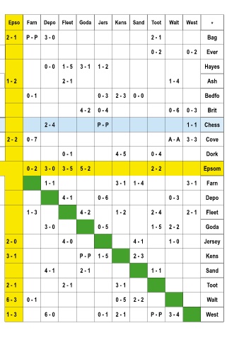 Eps 1 - 4 0 - 2 3 - 0 3 - 5 5 - 2 2 - 2 Epsom