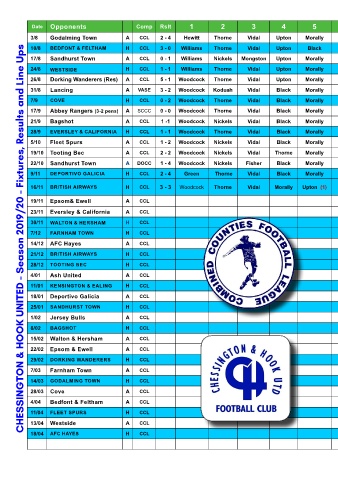 CHESSINGTON & HOOK UNITED - Season 2019/20 - Fixtures, Results and line Ups