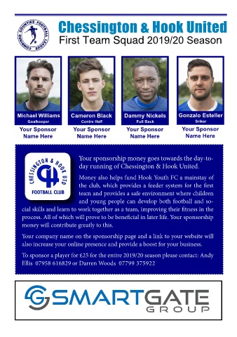 To sponsor a player for £25 for the entire 2019/20 season please contact: Andy