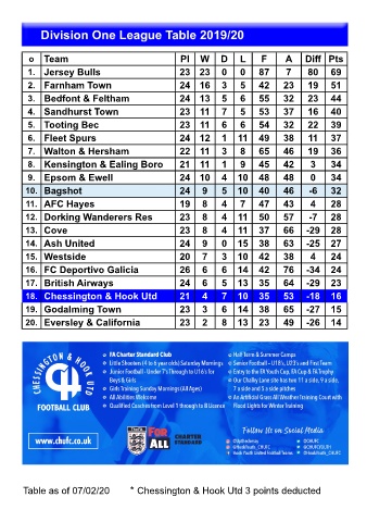 Table as of 07/02/20       * Chessington & Hook Utd 3 points deducted