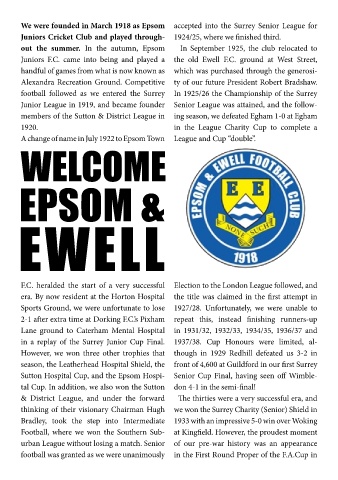 We were founded in March 1918 as Epsom accepted into the Surrey Senior League for