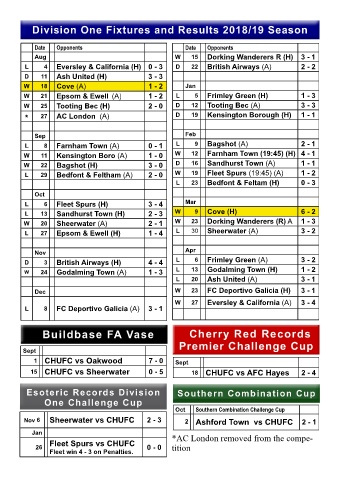 l 29 bedfont & Feltham (A) 2 - 0 W 19 Fleet Spurs (19:45) (A) 1 - 2