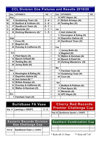 W 3 Godalming Town (A) 2 - 4 21 british Airways (H)