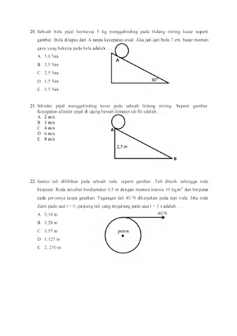 20. Sebuah bola pejal bermassa 5 kg menggelinding pada bidang miring kasar seperti