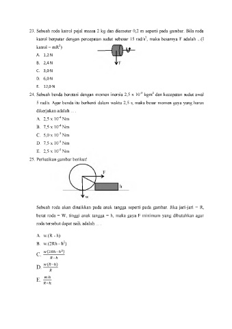 23. Sebuah roda katrol pejal massa 2 kg dan diameter 0,2 m seperti pada gambar. Bila roda