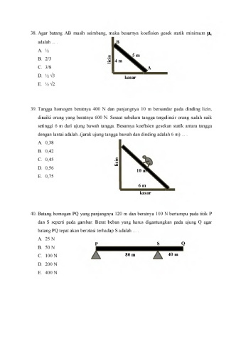 38. Agar batang AB masih seimbang, maka besarnya koefisien gesek statik minimum