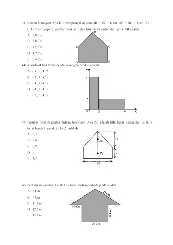 43. Karton homogen ABCDE mempunyai ukuran AB = EC = 8 cm, AE = BC = 4 cm ED =
