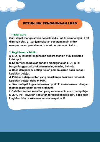 Guru dapat mengarahkan peserta didik untuk mempelajari LKPD