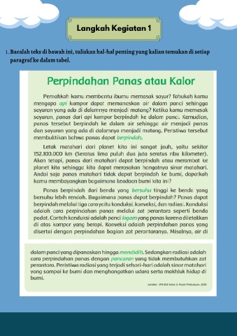 Langkah Kegiatan 1 1. Bacalah teks di bawah ini, tuliskan hal-hal penting yang kalian temukan di setiap paragraf ke dalam tabel.