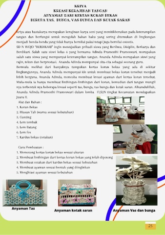 lebih berguna. Ananda Adinda, mencoba membuat kreasi ayaman dari kertas koran tersebut.