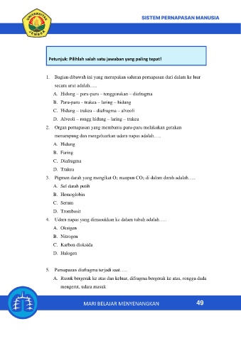 4. Udara napas yang dimasukkan ke dalam tubuh adalah…..
