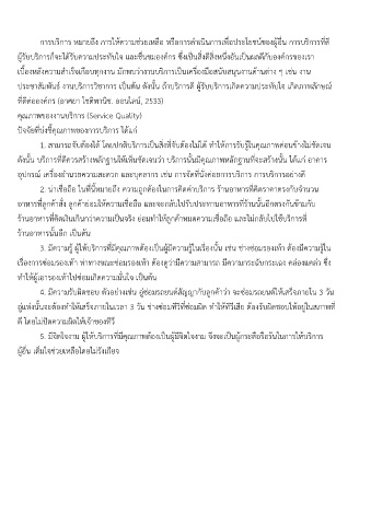 ปัจจัยที่บ่งชี้คุณภาพของการบริการ ได้แก่