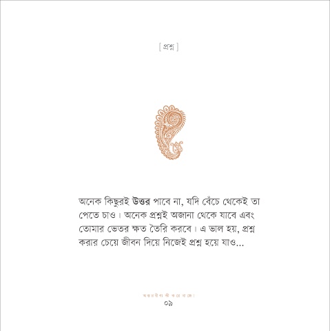 [ cÖkœ ] A‡bK wKQziB DËi cv‡e bv, hw` †eu‡P †_‡KB Zv †c‡Z PvI| A‡bK cÖkœB ARvbv †_‡K hv‡e Ges †Zvgvi †fZi ÿZ ˆZwi Ki‡e| G fvj nq, cÖkœ Kivi †P‡q Rxeb w`‡q wb‡RB cÖkœ n‡q hvI... A šÍ i ex Yv Kx K †i ev †R ! 09