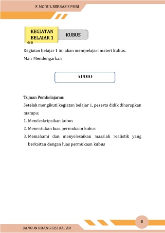 Kegiatan belajar 1 ini akan mempelajari materi kubus.