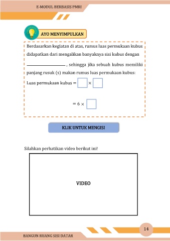 Berdasarkan kegiatan di atas, rumus luas permukaan kubus