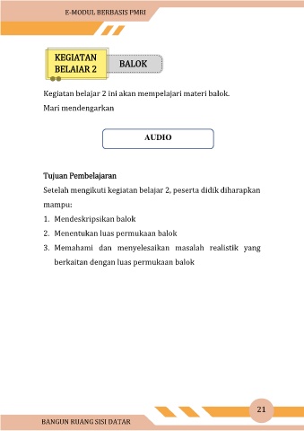 Kegiatan belajar 2 ini akan mempelajari materi balok.
