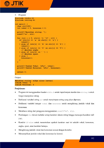 • Kondisi if-else untuk menentukan apakah karakter saat ini adalah vokal, konsonan,