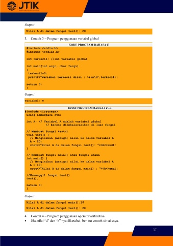 cout<<”Nilai A di dalam fungsi test(): “<<A<<endl;