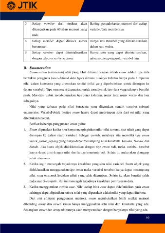 dibanding array dan struct. Enum hanya menggunakan satu nilai dari konstanta yang ada.