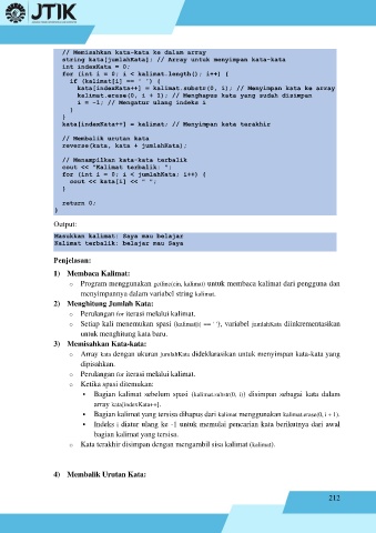 o Array kata dengan ukuran jumlahKata dideklarasikan untuk menyimpan kata-kata yang