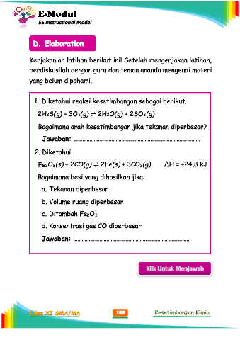 Kelas XI SMA/MA 109 Kesetimbangan Kimia