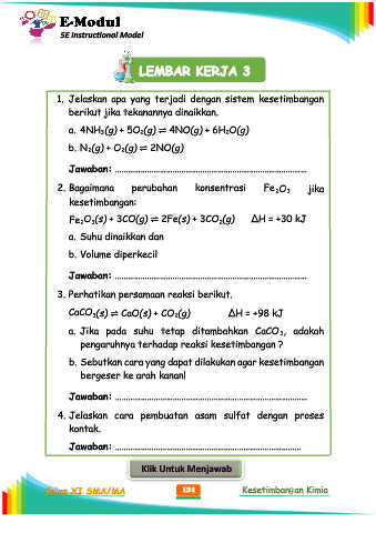 Kelas XI SMA/MA 121 Kesetimbangan Kimia