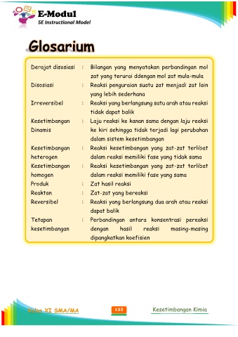 Kelas XI SMA/MA 125 Kesetimbangan Kimia