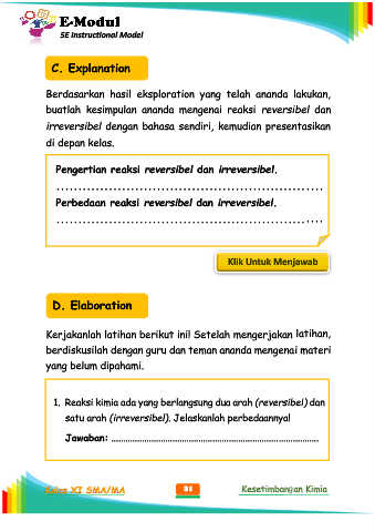 Kelas XI SMA/MA                             31                Kesetimbangan Kimia